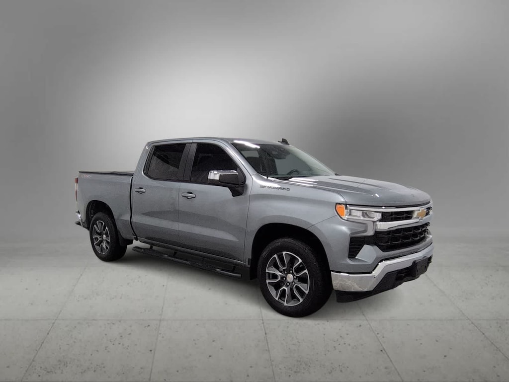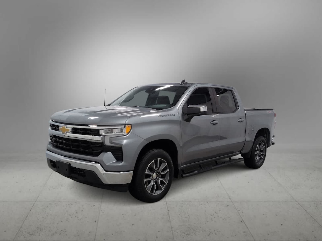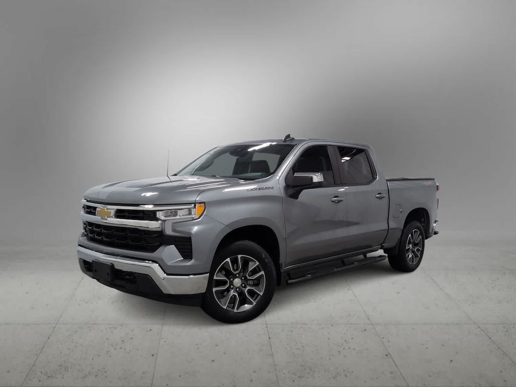 Our Accident Free, One Owner, Dealer Certified 2023 Chevrolet Silverado 1500 LT Crew Cab Short Bed 4X4 is a wise choice for working smarter in Sterling Gray Metallic! Powered by a 2.7L Turbo delivering 310hp to an 8 Speed Automatic transmission for top-notch towing and hauling. This Four Wheel Drive truck also has an Eaton automatic locking rear differential for better traction, and it scores nearly 21mpg on the highway. The upscale exterior includes high-intensity LED headlamps, chrome bumpers, matching mirror caps, a rear CornerStep, cargo-bed lighting, black recovery hooks, step bars, a tonneau cover, an EZ Lift power lock/release tailgate, heated power mirrors, and a trailer hitch with Hitch Guidance. This is a Silverado of style and substance!