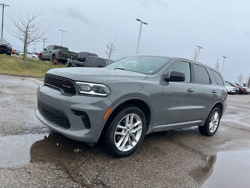 Our Accident Free, One Owner, Certified Pre-Owned 2023 Dodge Durango GT AWD can be fun to drive even with the whole family on board in Destroyer Gray! Powered by a 3.6 Liter Pentastar V6 offering 293hp tethered to a paddle-shifted 8 Speed Automatic transmission. This All Wheel Drive SUV also checks in with responsive handling and a rear load-leveling suspension, and it achieves nearly 25mpg on the highway. Ready to flex, our Durango has a muscular design with LED lighting, 20-inch alloy wheels, a black sport grille, gloss-black heated power mirrors, a power liftgate, and bright-tipped dual exhaust.