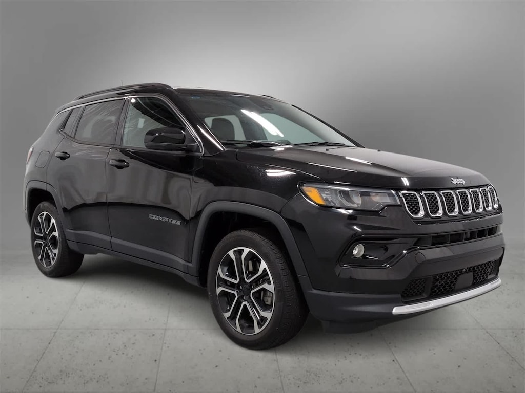 People love our Accident Free, One Owner, Certified Pre-Owned 2023 Jeep Compass Limited 4X4 for its premium approach to adventure and bold Diamond Black Crystal Pearl design! Powered by a TurboCharged 2.0 Liter 4 Cylinder delivering 200hp to an 8 Speed Automatic transmission to dominate your daily drive. You can also enjoy trail-friendly capability with a Selec-Terrain system, and this Four Wheel Drive SUV scores nearly 32mpg on the highway. Our Compass helps get your attention with a gloss-black roof, a matching grille, bright chrome accents, LED lighting, fog lamps, alloy wheels, and black roof rails.