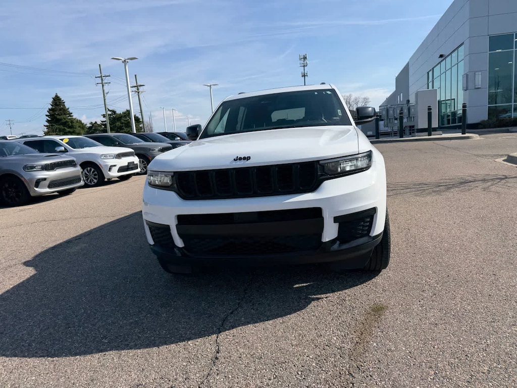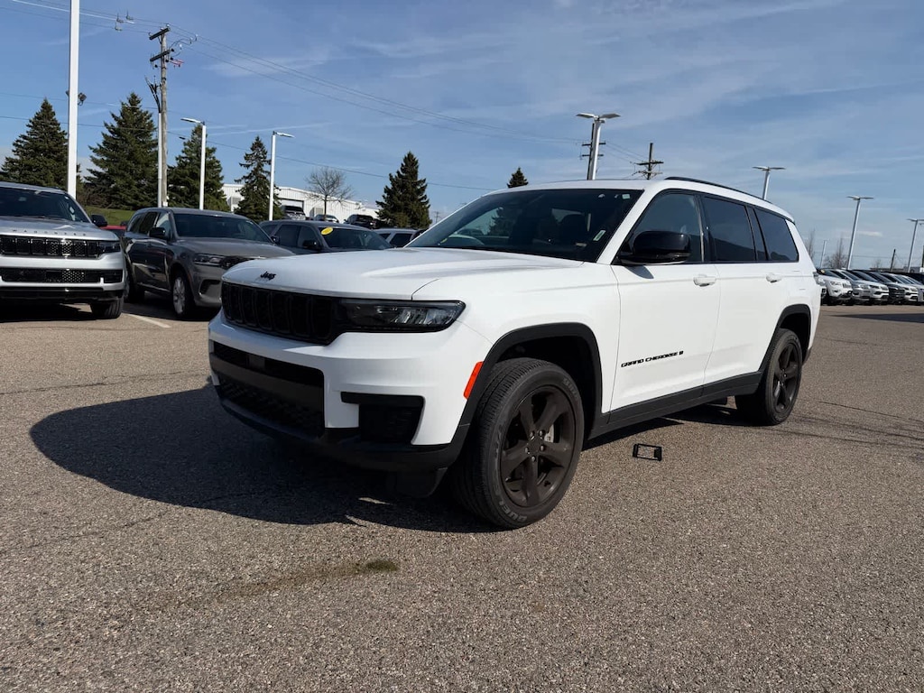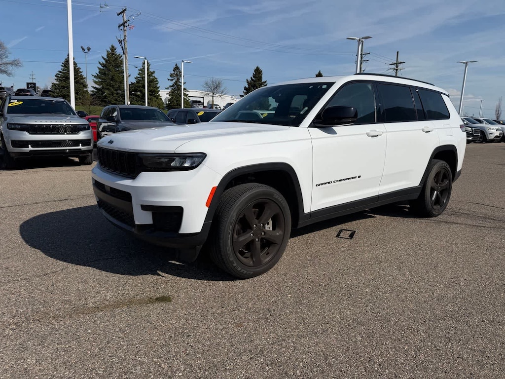 Striking in looks and function, our sophisticated, Accident Free, One Owner, Certified Pre-Owned 2023 Jeep Grand Cherokee L Altitude 4X4 refuses to sacrifice capability in Bright White! Motivated by a 3.6 Liter Pentastar V6 that provides 293hp to an 8 Speed Automatic transmission with a dedicated Sport mode. A good choice for bad conditions, this Four Wheel Drive SUV also returns nearly 25mpg on the highway. Our Grand Cherokee L brings you bold style with 20-inch gloss-black wheels, matching mirror caps, a power sunroof, roof rails, and a power liftgate.