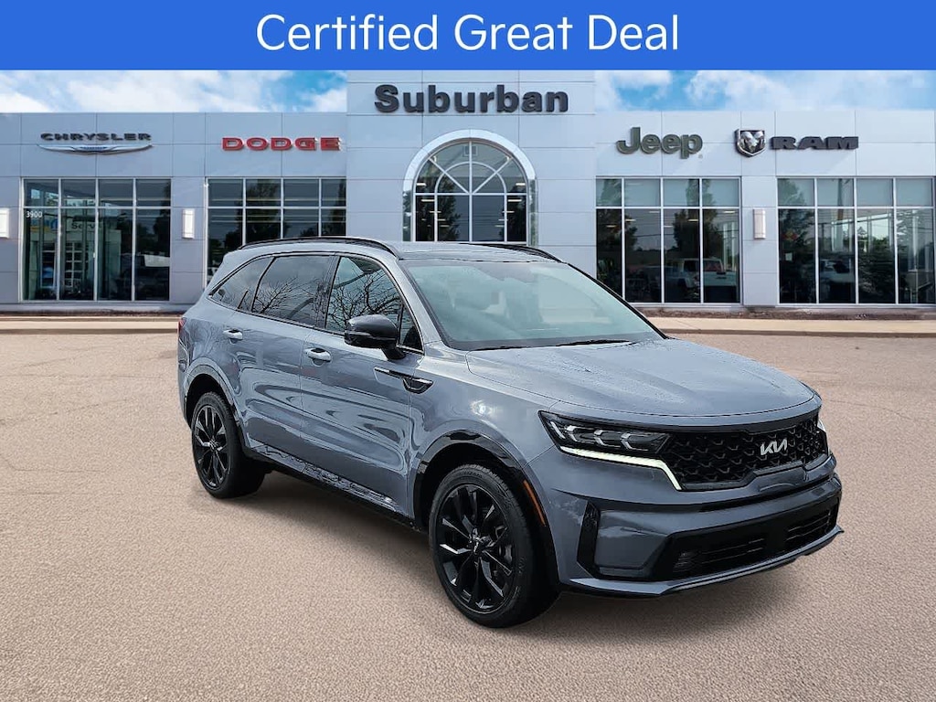 Our 2022 Kia Sorento SX has aced its 125-point inspection, qualifying it as a Certified Pre-Owned and offers great peace of mind for consumers like you. This 2022 Kia Sorento SX has been inspected by our technicians and comes with a 3-month/3,000 Maximum Care Warranty, 24/7 Roadside Assistance, Rental Car Reimbursement, and Trip Interruption Protection. Dont forget our special financing or leasing options available...Ask us for Details!