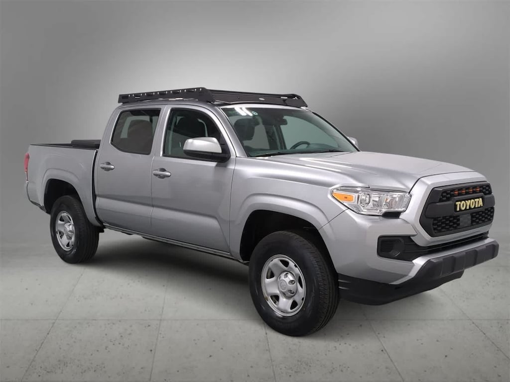 A wise choice, our Accident Free, One Owner 2023 Toyota Tacoma SR Double Cab 4X4 is here to help on your next drive in Celestial Silver Metallic! Powered by a 3.5 Liter V6 that generates 278hp connected to a 6 Speed Automatic transmission for spirited performance. This Four Wheel Drive truck also comes standard with an automatic limited-slip differential for enhanced control and returns nearly 22mpg on the highway. You can tell the world youre serious about trucking with our Tacomas robust design, heated power mirrors, front skid plates, a Class IV hitch receiver, and a rugged composite bed.
