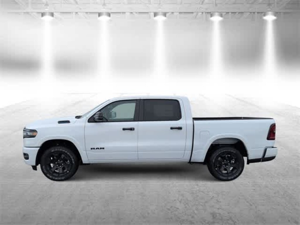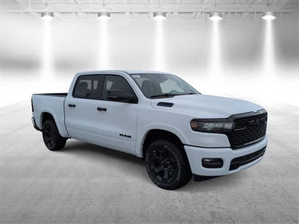 2025 Ram 1500 Big Horn/Lone Star. Big Horn Level 2 Equipment Group (115V Auxiliary Power Outlet, 115V Auxiliary Rear Power Outlet, 12 Touchscreen Display, 2nd Row In Floor Storage Bins, 400W Inverter, 4G LTE Wi-Fi Hot Spot, 9 Amplified Speakers w/Subwoofer, Air Conditioning ATC w/Dual Zone Control, Apple CarPlay, Auto Power-Folding Mirrors, Auto-Dimming Exterior Driver Mirror, Auto-Dimming Rear-View Mirror, Black Exterior Mirrors, Black Premium Power Mirrors, Cluster 7.0 TFT Color Display, Configurable Drive Mode, Connected Travel & Traffic Services, Connectivity - US/Canada, Convex Wide-Angle Exterior Mirror Insert, Exterior Mirrors Courtesy Lamps, Exterior Mirrors w/Heating Element, Exterior Mirrors w/Supplemental Signals, Glove Box Lamp, Google Android Auto, GPS Antenna Input, GPS Navigation, HD Radio, Heated Front Seats, Heated Steering Wheel, Integrated Voice Command w/Bluetooth, Leather Wrapped Steering Wheel, LED Dome Lamp w/On/Off Switch, LED Footwell Lighting, Media Hub w/2 Charge Only USBs, Overhead LED Lamps, Power 2-Way Driver Lumbar Adjust, Power Adjust 8-Way Driver Seat, Power Adjustable Pedals, Premium Overhead Console, Radio: Uconnect 5 Nav w/12.0 Display, Rear Power Sliding Window, Rear Window Defroster, Remote Tailgate Release, Security Alarm, SiriusXM w/360L, Steering Wheel Mounted Audio Controls, Sun Visors w/Illuminated Vanity Mirrors, Universal Garage Door Opener, and USB Host Flip), Night Edition (3 Rear Seat Head Restraints, 4 Way Front Headrests, Accent Color Door Handles, Accent Color Premium Power Mirrors, Accent Color Tailgate Handle, Anti-Spin Differential Rear Axle, Black Exterior Truck Badging, Black Headlamp Bezels, Black Interior Accents, Black Painted Exterior Mirrors Caps, Black Tail Lamp Bezels, Body Color Front Bumper, Body Color Rear Bumper w/Step Pads, Bucket Seats, Deluxe Cloth Bucket Seats, Front Seat Back Map Pockets, Full Length Floor Console, Grille Black Surround Black Mesh, Manual Adjust 4-Way Front Passenger Seat, RAM Grille Badge - Black, Rear 60/40 Folding Seat, Rear Center Armrest, and Wheels: 20 x 9.0 Aluminum Painted Clad), Quick Order Package 23Z Big Horn (Big Horn Badge), 3.21 Rear Axle Ratio, 4-Wheel Disc Brakes, 6 Speakers, ABS brakes, Air Conditioning, Alloy wheels, AM/FM radio, Apple CarPlay/Android Auto, Auto High-beam Headlights, Brake assist, Bumpers: chrome, Cloth Bench Seat, Compass, Delay-off headlights, Driver door bin, Dual front impact airbags, Dual front side impact airbags, Electronic Stability Control, Front anti-roll bar, Front Center Armrest w/Storage, Front fog lights, Front reading lights, Front wheel independent suspension, Fully automatic headlights, Heated door mirrors, Illuminated entry, Low tire pressure warning, Manual Folding Exterior Mirrors, MOPAR Front & Rear Rubber Floor Mats, Occupant sensing airbag, Outside temperature display, Overhead airbag, Overhead console, Panic alarm, ParkView Rear Back-Up Camera, Passenger door bin, Passenger vanity mirror, Power door mirrors, Power steering, Power windows, Radio data system, Radio: Uconnect 5 W w/8.4 Display, RAM Grille Badge - Chrome, Rear anti-roll bar, Rear seat center armrest, Rear step bumper, Remote keyless entry, Speed control, Split folding rear seat, Supplier Part Tracking (J-1), Tachometer, Telescoping steering wheel, Tilt steering wheel, Traction control, Trip computer, Variably intermittent wipers, Voltmeter, and Wheels: 18 x 8 Cast-Aluminum Painted Bluetooth Backup Camera. Bright White Clearcoat 8-Speed Automatic 3.6L V6 24V VVT