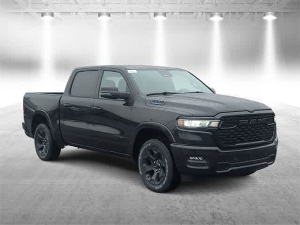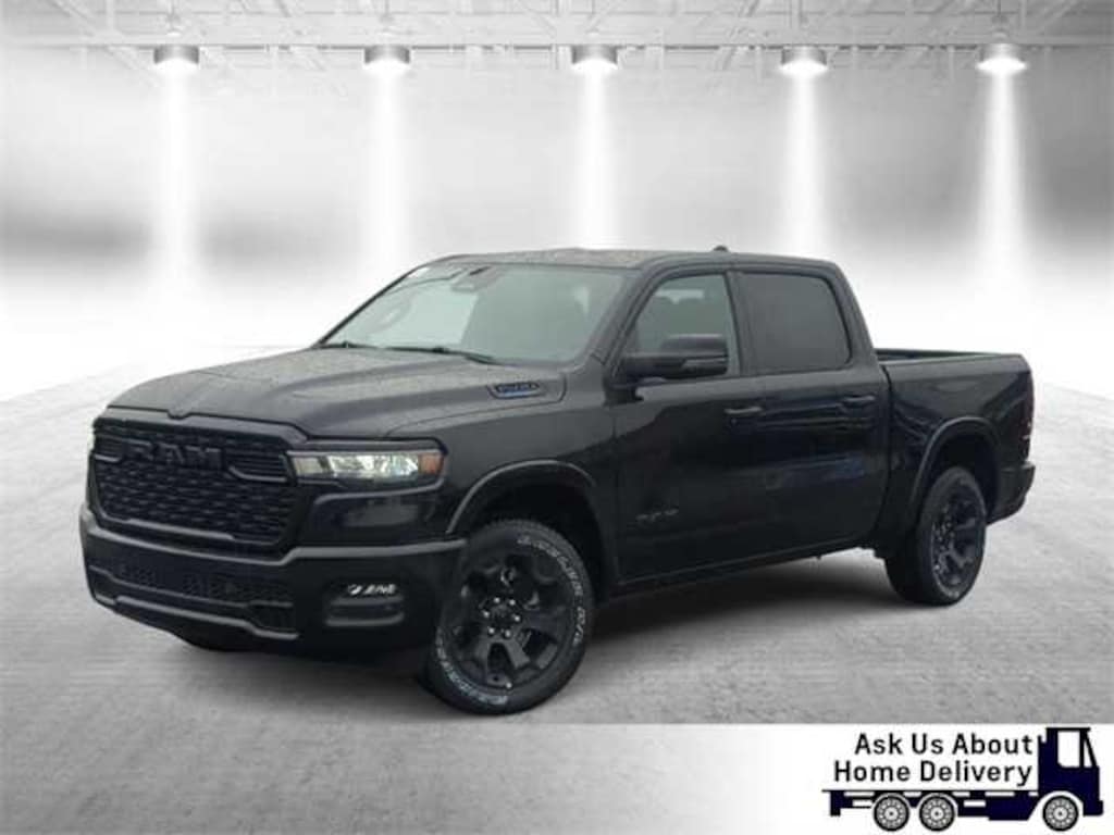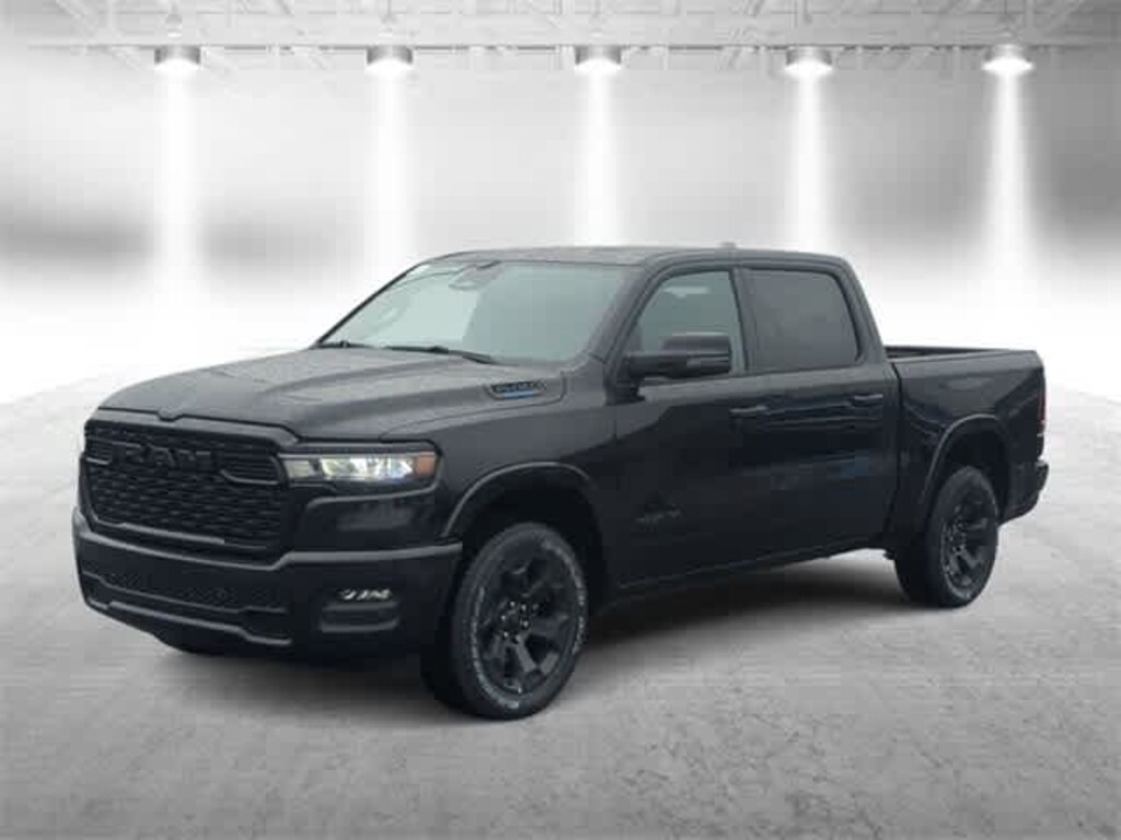 2025 Ram 1500 Big Horn/Lone Star. Big Horn Level 2 Equipment Group (115V Auxiliary Power Outlet, 115V Auxiliary Rear Power Outlet, 12 Touchscreen Display, 2nd Row In Floor Storage Bins, 400W Inverter, 4G LTE Wi-Fi Hot Spot, 9 Amplified Speakers w/Subwoofer, Air Conditioning ATC w/Dual Zone Control, Apple CarPlay, Auto Power-Folding Mirrors, Auto-Dimming Exterior Driver Mirror, Auto-Dimming Rear-View Mirror, Black Exterior Mirrors, Black Premium Power Mirrors, Cluster 7.0 TFT Color Display, Configurable Drive Mode, Connected Travel & Traffic Services, Connectivity - US/Canada, Convex Wide-Angle Exterior Mirror Insert, Exterior Mirrors Courtesy Lamps, Exterior Mirrors w/Heating Element, Exterior Mirrors w/Supplemental Signals, Glove Box Lamp, Google Android Auto, GPS Antenna Input, GPS Navigation, HD Radio, Heated Front Seats, Heated Steering Wheel, Integrated Voice Command w/Bluetooth, Leather Wrapped Steering Wheel, LED Dome Lamp w/On/Off Switch, LED Footwell Lighting, Media Hub w/2 Charge Only USBs, Overhead LED Lamps, Power 2-Way Driver Lumbar Adjust, Power Adjust 8-Way Driver Seat, Power Adjustable Pedals, Premium Overhead Console, Radio: Uconnect 5 Nav w/12.0 Display, Rear Power Sliding Window, Rear Window Defroster, Remote Tailgate Release, Security Alarm, SiriusXM w/360L, Steering Wheel Mounted Audio Controls, Sun Visors w/Illuminated Vanity Mirrors, Universal Garage Door Opener, and USB Host Flip), Night Edition (3 Rear Seat Head Restraints, 4 Way Front Headrests, Accent Color Door Handles, Accent Color Premium Power Mirrors, Accent Color Tailgate Handle, Anti-Spin Differential Rear Axle, Black Exterior Truck Badging, Black Headlamp Bezels, Black Interior Accents, Black Painted Exterior Mirrors Caps, Black Tail Lamp Bezels, Body Color Front Bumper, Body Color Rear Bumper w/Step Pads, Bucket Seats, Deluxe Cloth Bucket Seats, Front Seat Back Map Pockets, Full Length Floor Console, Grille Black Surround Black Mesh, Manual Adjust 4-Way Front Passenger Seat, RAM Grille Badge - Black, Rear 60/40 Folding Seat, Rear Center Armrest, and Wheels: 20 x 9.0 Aluminum Painted Clad), Quick Order Package 23Z Big Horn (Big Horn Badge), 3.21 Rear Axle Ratio, 4-Wheel Disc Brakes, 6 Speakers, ABS brakes, Air Conditioning, Alloy wheels, AM/FM radio, Apple CarPlay/Android Auto, Auto High-beam Headlights, Brake assist, Bumpers: chrome, Cloth Bench Seat, Compass, Delay-off headlights, Driver door bin, Dual front impact airbags, Dual front side impact airbags, Electronic Stability Control, Front anti-roll bar, Front Center Armrest w/Storage, Front fog lights, Front reading lights, Front wheel independent suspension, Fully automatic headlights, Heated door mirrors, Illuminated entry, Low tire pressure warning, Manual Folding Exterior Mirrors, MOPAR Front & Rear Rubber Floor Mats, Occupant sensing airbag, Outside temperature display, Overhead airbag, Overhead console, Panic alarm, ParkView Rear Back-Up Camera, Passenger door bin, Passenger vanity mirror, Power door mirrors, Power steering, Power windows, Radio data system, Radio: Uconnect 5 W w/8.4 Display, RAM Grille Badge - Chrome, Rear anti-roll bar, Rear seat center armrest, Rear step bumper, Remote keyless entry, Speed control, Split folding rear seat, Supplier Part Tracking (J-1), Tachometer, Telescoping steering wheel, Tilt steering wheel, Traction control, Trip computer, Variably intermittent wipers, Voltmeter, and Wheels: 18 x 8 Cast-Aluminum Painted Bluetooth Backup Camera. Diamond Black Crystal Pearlcoat 8-Speed Automatic 3.6L V6 24V VVT
