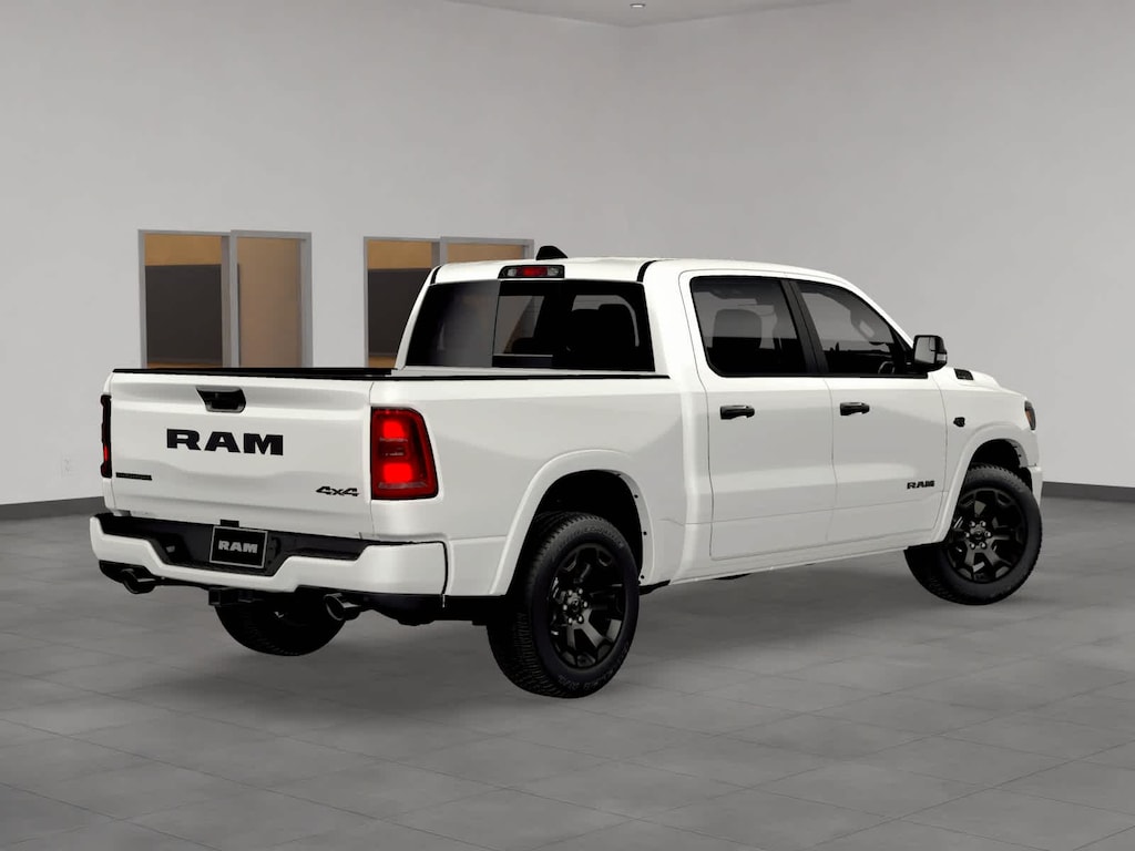 Big Horn Level 2 Equipment Group (115V Auxiliary Power Outlet, 115V Auxiliary Rear Power Outlet, 12 Touchscreen Display, 2nd Row In Floor Storage Bins, 3 Rear Seat Head Restraints, 4 Way Front Headrests, 400W Inverter, 4G LTE Wi-Fi Hot Spot, 9 Amplified Speakers w/Subwoofer, Air Conditioning ATC w/Dual Zone Control, Apple CarPlay, Auto Power-Folding Mirrors, Auto-Dimming Exterior Driver Mirror, Auto-Dimming Rear-View Mirror, Black Exterior Mirrors, Black Premium Power Mirrors, Body Color Fender Flares, Bucket Seats, Center Console Parts Module, Cluster 7.0 TFT Color Display, Configurable Drive Mode, Connected Travel & Traffic Services, Connectivity - US/Canada, Convex Wide-Angle Exterior Mirror Insert, Deluxe Cloth Bucket Seats, Disassociated Touchscreen Display, Exterior Mirrors Courtesy Lamps, Exterior Mirrors w/Heating Element, Exterior Mirrors w/Supplemental Signals, Front Seat Back Map Pockets, Full Length Floor Console, Global Telematics Box Module (TBM), Glove Box Lamp, Google Android Auto, GPS Antenna Input, GPS Navigation, HD Radio, Heated Front Seats, Heated Steering Wheel, Integrated Center Stack Radio, Integrated Voice Command w/Bluetooth, Leather Wrapped Steering Wheel, LED Dome Lamp w/On/Off Switch, LED Footwell Lighting, Manual Adjust 4-Way Front Passenger Seat, Media Hub w/2 Charge Only USBs, Overhead LED Lamps, Power 2-Way Driver Lumbar Adjust, Power Adjust 8-Way Driver Seat, Power Adjustable Pedals, Premium Overhead Console, Radio: Uconnect 5 Nav w/12.0 Display, Rear 60/40 Folding Seat, Rear Center Armrest, Rear Power Sliding Window, Rear Window Defroster, Remote Tailgate Release, Security Alarm, SiriusXM Radio Service, SiriusXM w/360L, Steering Wheel Mounted Audio Controls, Sun Visors w/Illuminated Vanity Mirrors, Universal Garage Door Opener, USB Host Flip, and Wheels: 20 x 9 Aluminum Chrome Clad (WRK)), Night Edition (Accent Color Door Handles, Accent Color Premium Power Mirrors, Accent Color Tailgate Handle, Anti-Spin Differential Rear Axle, Black Exterior Truck Badging, Black Headlamp Bezels, Black Interior Accents, Black Painted Exterior Mirrors Caps, Black Tail Lamp Bezels, Body Color Front Bumper, Body Color Rear Bumper w/Step Pads, Dual Exhaust w/Black Tips, Grille Black Surround Black Mesh, RAM Grille Badge - Black, and Wheels: 20 x 9.0 Aluminum Painted Clad), Quick Order Package 27Z Big Horn, 4-Wheel Disc Brakes, 48V Belt Starter Generator, 6 Speakers, ABS brakes, Air Conditioning, Alloy wheels, AM/FM radio, Apple CarPlay/Android Auto, Auto High-beam Headlights, Brake assist, Bumpers: chrome, Cloth Bucket Seats, Compass, Delay-off headlights, Driver door bin, Dual front impact airbags, Dual front side impact airbags, Electronic Stability Control, Front anti-roll bar, Front Bucket Seats, Front Center Armrest w/Storage, Front fog lights, Front reading lights, Front wheel independent suspension, Fully automatic headlights, Heated door mirrors, Illuminated entry, Low tire pressure warning, Manual Adjust 4-Way Driver Seat, Manual Folding Exterior Mirrors, Manufacturers Statement of Origin, MOPAR Front & Rear Rubber Floor Mats, Occupant sensing airbag, Outside temperature display, Overhead airbag, Overhead console, Panic alarm, ParkView Rear Back-Up Camera, Passenger door bin, Passenger vanity mirror, Power door mirrors, Power steering, Power windows, Radio data system, Radio: Uconnect 5 W w/8.4 Display, RAM Grille Badge - Chrome, Rear anti-roll bar, Rear step bumper, Rear Wheelhouse Liners, Remote keyless entry, Speed control, Supplier Part Tracking (J-1), Tachometer, Telescoping steering wheel, Tilt steering wheel, Traction control, Trip computer, Variably intermittent wipers, Voltmeter, and Wheels: 18 x 8 Cast-Aluminum Painted Bluetooth Backup Camera. Bright White Clearcoat 2026 Ram 1500 Big Horn/Lone Star 4WD 8-Speed Automatic HEMI 5.7L V8 Multi Displacement VVT eTorque