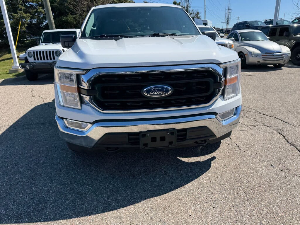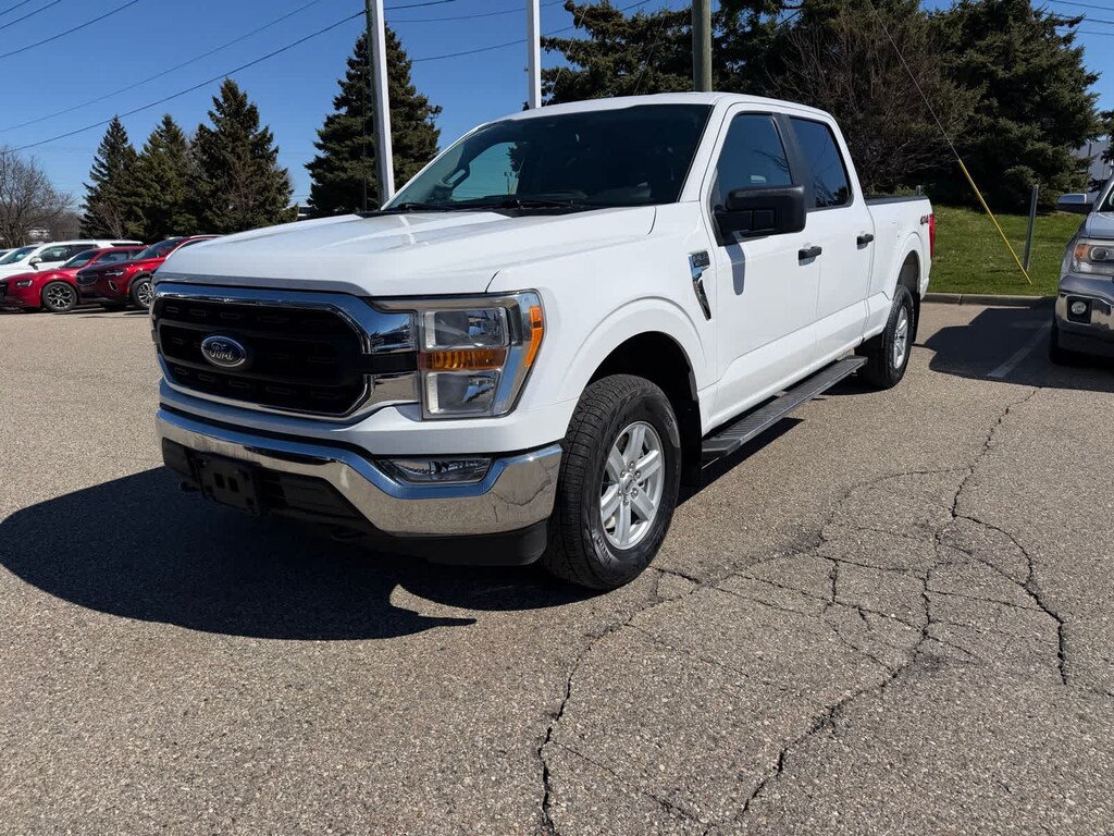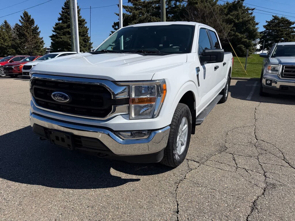 Our Accident Free, Dealer Certified 2022 Ford F-150 XLT SuperCrew 4X4 with the Trailer Tow Package in Oxford White is built from the ground up for better trucking! Motivated by a 5.0 Liter V8 supplying 400hp tethered to a 10 Speed SelectShift Automatic transmission so you can take on your world with rugged capability at your command. This Four Wheel Drive truck also scores nearly 22mpg on the highway, and it matches its muscular performance with an upscale design. Highlights include chrome accents, fog lamps, heated power mirrors, a power locking tailgate, a spray-on bedliner, step bars, and bold alloy wheels.