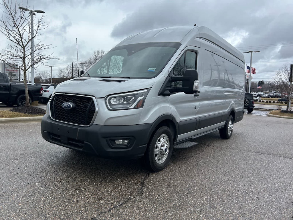 Do more daily with our Accident Free, One Owner 2023 Ford Transit High Roof Extended Cargo Van AWD that delivers impressive advantages in Ingot Silver! Motivated by a TurboCharged 3.5 Liter EcoBoost V6 offering 310hp to a 10 Speed Automatic transmission with multiple drive modes for keeping on the move. A robust suspension helps this All Wheel Drive van handle heavy loads, and it makes a bold impression with its no-nonsense design. Our Transit makes life easier with swing-out rear cargo doors, a sliding passenger-side door, power mirrors, and bold black details.