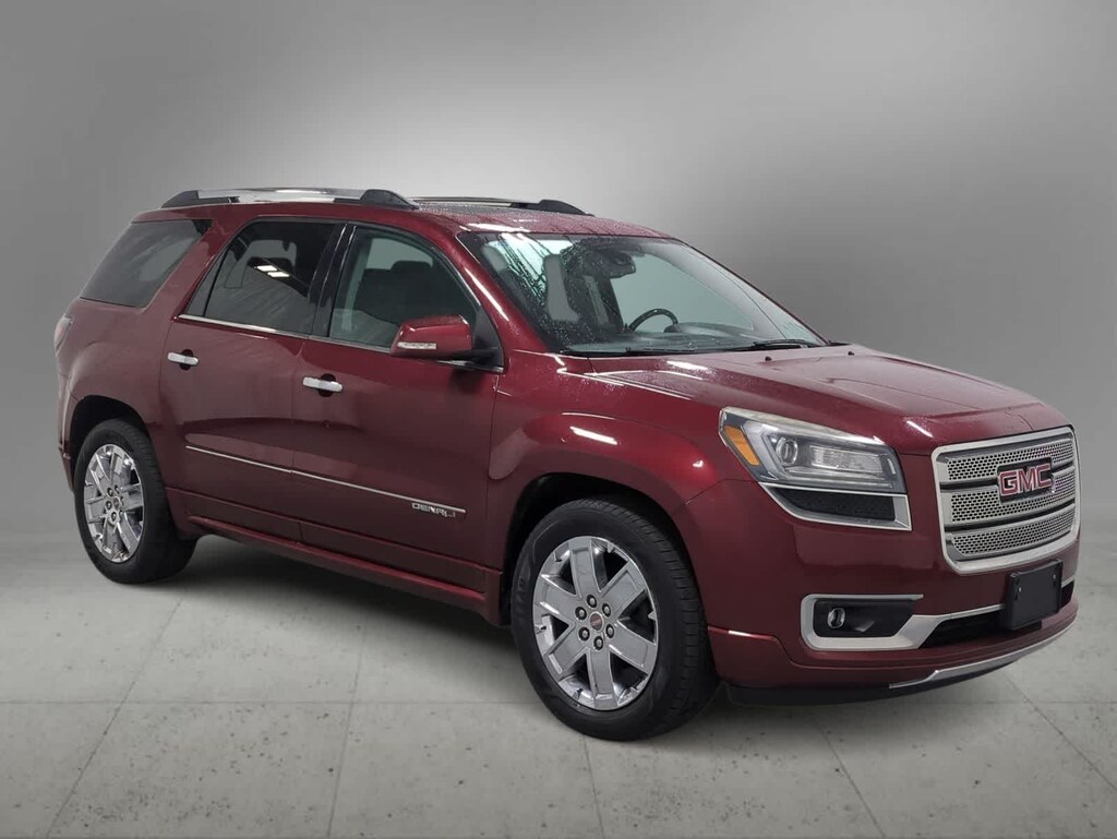 Enjoy top-of-the-line, family-friendly luxury in our 2016 GMC Acadia Denali AWD presented in Crimson Red Tintcoat! Powered by a 3.6 Liter V6 that generates 288hp matched with a responsive 6 Speed Automatic transmission for smooth acceleration. This All Wheel Drive SUV delivers nearly 24mpg on the road and a confident ride youll look forward to each day. Highlighted by chrome-clad wheels, xenon headlights, and a fantastic panoramic sunroof, our Denali has a bold profile that turns heads. A tow hitch is also in place when you need it.