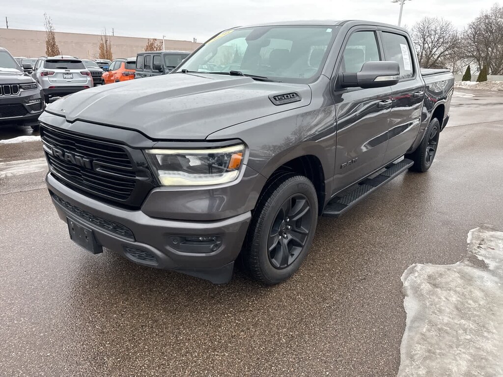 115V Auxiliary Power Outlet, 115V Auxiliary Rear Power Outlet, 2 USB Full Function/Charge Only Media Hub, 2nd Row In Floor Storage Bins, 400W Inverter, Air Conditioning ATC w/Dual Zone Control, Anti-Spin Differential Rear Axle, Auto-Dimming Exterior Driver Mirror, Auto-Dimming Rear-View Mirror, Big Horn Badge, Big Horn IP Badge, Big Horn Level 2 Equipment Group, Black Exterior Truck Badging, Black Headlamp Bezels, Black Interior Accents, Black Premium Power Mirrors, Body Color Door Handles, Body Color Exterior Mirrors, Body Color Front Bumper, Body Color Premium Power Mirrors, Body Color Rear Bumper w/Step Pads, Class IV Receiver Hitch, Dampened Tailgate, Deluxe Cloth Bucket Seats, Dual Exhaust w/Black Tips, Exterior Mirrors Courtesy Lamps, Exterior Mirrors w/Memory, Foam Bottle Insert (Door Trim Panel), Front LED Fog Lamps, Glove Box Lamp, GPS Navigation, Grille Surround 1 Black Texture 2 Black, Heated Front Seats, Heated Steering Wheel, LED Reflector Headlamps, LED Taillamps, Night Edition, ParkSense Front/Rear Park Assist w/Stop, Power 4-Way Driver Lumbar Adjust, Power 8-Way Driver Seat, Power Adjustable Pedals, Power-Folding Mirrors, Premium Lighting Group, Quick Order Package 27Z Big Horn, Radio: Uconnect 4 w/8.4 Display, Rear Dome w/On/Off Switch Lamp, Rear Power Sliding Window, Rear Window Defroster, Security Alarm, SiriusXM Satellite Radio, Sun Visors w/Illuminated Vanity Mirrors, Universal Garage Door Opener, Wheels: 20 x 9.0 Premium Paint/Polished.