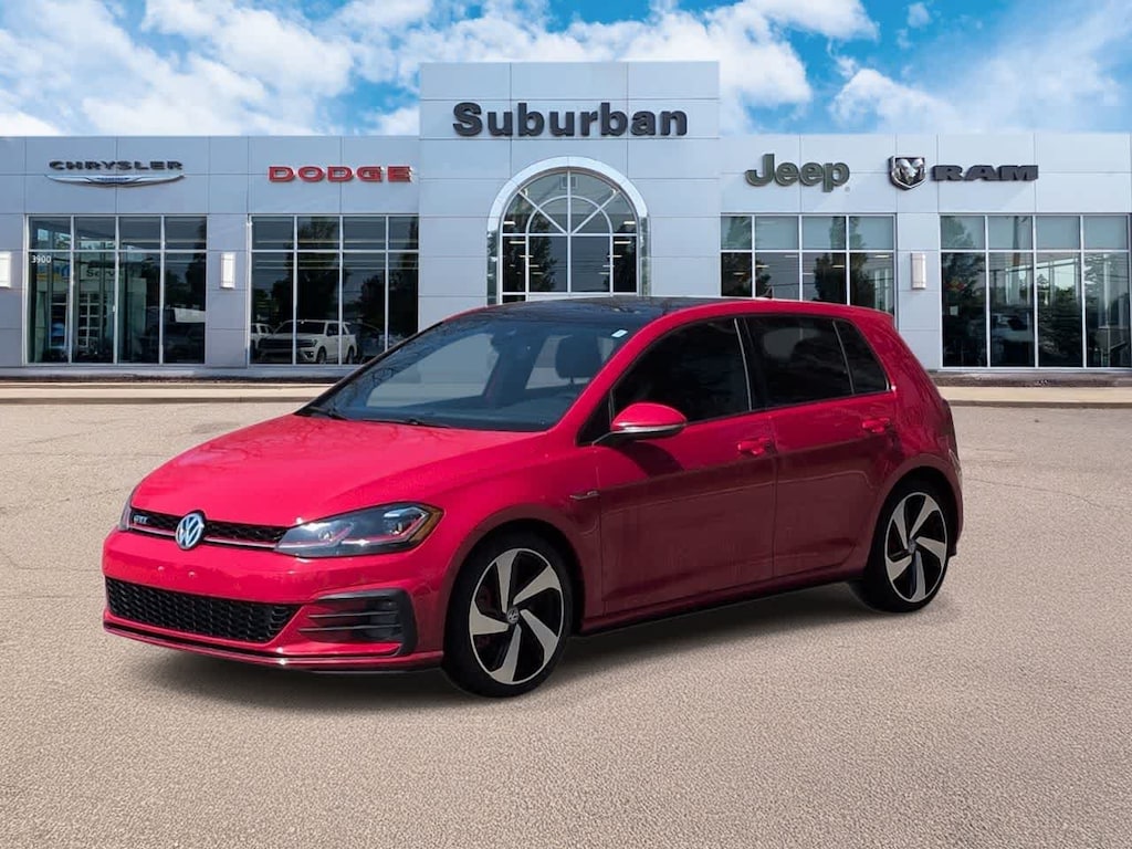se habla Espanol! Our great looking 2018 Volkswagen Golf GTI Autobahn Hatchback is outstanding in Red! Powered by a TurboCharged 2.0 Liter 4 Cylinder that offers 220hp paired with a fun-to-drive 6 Speed Automatic transmission with Tiptronic and Sport mode. Our Front Wheel Drive will impress you with its agile handling and drive according to your mood, thanks to our Driving Mode Selection, scoring nearly 33mpg on the highway. Our Autobahn grabs attention with its aggressive styling showing 18-inch Dallas alloy wheels, red brake calipers, and a panoramic sunroof. Look and see the low-load floor and wide hatch opening that makes it easy to load up your gear.